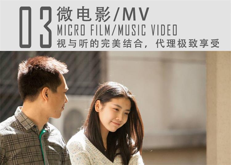 小體積的微電影,成就品牌內容的大理想。微電影是微時代網絡時代的電影形式,具有微時長、微制作、微投資特點。音樂MV是利用影像畫面對音樂無法涵蓋的信息內容進行補充的手段,對音樂解讀,用視覺畫面同時呈現的藝術類型,也是一種極致有效的企業(yè)品牌服務推廣方式。我們將創(chuàng)新的元素淬煉到策劃、創(chuàng)意、拍攝、制作的每一環(huán)節(jié),締造全新的視聽價值。
